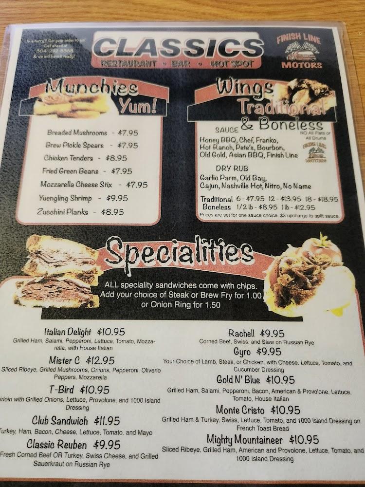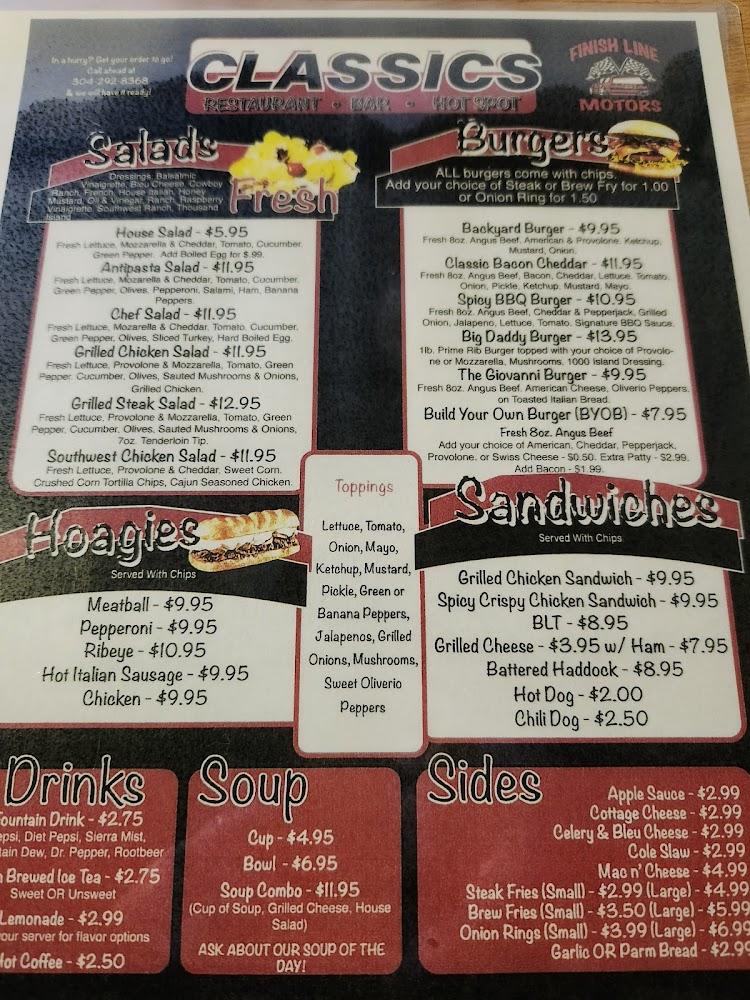 The menu at Classic's 3 Hot Spot Lounge offers an extensive selection. Categories include burgers, wings, salads, and sandwiches. Notable favorites are the Backyard Burger and delectable Traditional Wings. Each plate features fresh ingredients delivering great taste. Flavorful sauces range from tangy to spicy, accommodating all preferences.